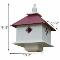 Install the Heath Cedar Purple Martin House with Crescent Entrance Holes – 12 Rooms in your lawn or garden to offer martins a beautiful place to colonize. Capable of housing up to twelve separate martin families, this house features cozy apartments 4.25″L x 5″W x 5″H. Ventilation holes ensure that each unit remains at a comfortable temperature. Porch dividers help prevent male domination issues, while perch railings offer a place to rest before entering the 2.75″ long starling resistant entrance holes. The pitched roof overhangs the porches, shedding water and protecting your bird tenants. Additionally, a 15.25″ long roof perch offers even more room for your martins to preen. The roof unscrews and the top removes for cleaning and nest checks. Use the included mounting plate to fasten this durable home atop the Heath Martin House Pole (not included) in an open space of your lawn. Enjoy the beautiful presence of musical purple martins living in your Purple Martin House. Some assembly required. Made in the USA.