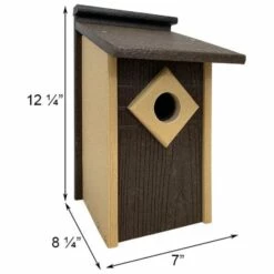 Invite martins to live in high style with the Wing and A Prayer Purple Martin Mansion with Verdigris Roof. This dramatic structure brings excitement and dazzling architecture to your bird garden, for seasons of enjoyment. The significant white home is crafted from PVC trimboard, designed to withstand the elements and resist mold, mildew, and delamination, for a virtually maintenance-free roost. Each of the ten apartments has an individual 2″ diameter opening, surrounded by verdigris colored metal to deter predators. Individual balconies beneath the openings on the second and third floors offer male martins their own territory, discouraging porch dominance disputes. The base of the home has a full platform around it for additional perching area. A steeply pitched, PVC roof protects the home, while its light green color offers both grace and style. Ventilation gaps beneath the roof overhang help each nest stay cool, protecting the hatchlings, and each compartment measures approximately 5.5″ long, 5.75″ wide, and 5.75″ tall. The roof can also be removed for seasonal cleaning, and each of the floors lifts out of the home for thorough nest checks. An attached collar at the base helps the structure mount to a true 4″ x 4″ post (not included), and attached brackets add more support. The white and verdigris color scheme offers an antique feel, and the PVC body will last for several seasons. Enjoy a lovely home and the soothing sounds of martins in your yard with this Purple Martin Mansion with Verdigris Roof. Made in the USA.